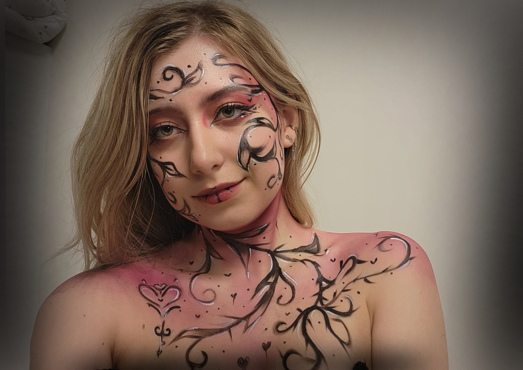 This look tells the story of someone poisoned by the sweetness of love’s lust. What begins as a blush of innocent affection twists into something darker, as thorned veins creep across the skin, the mark of a succubus slowly taking form. The soft pinks of purity fade into burning reds, symbolizing the fall from tenderness into obsession. Caught between yearning and corruption, she becomes both the seeker and the curse, eternally chasing the love that consumes her.