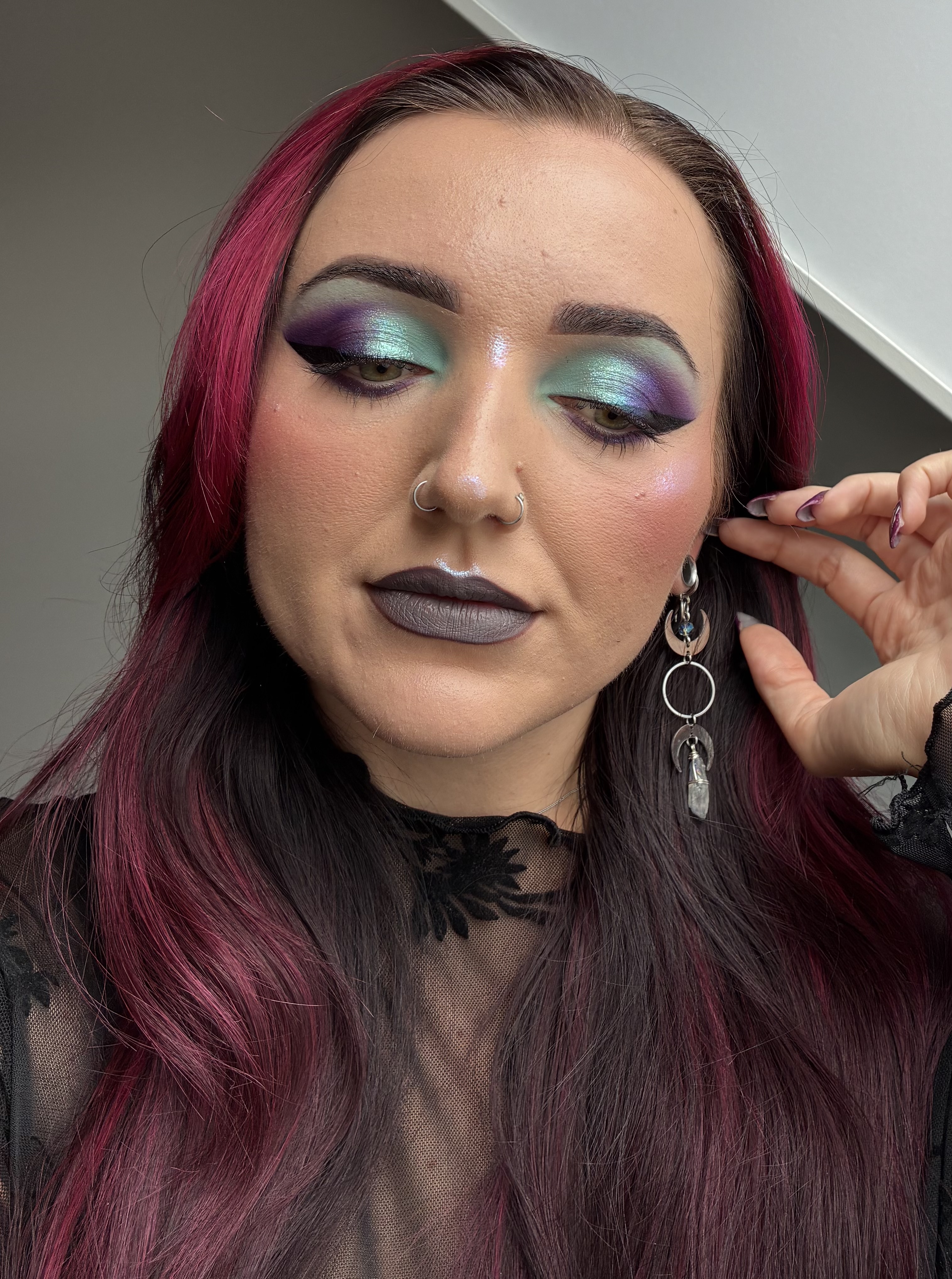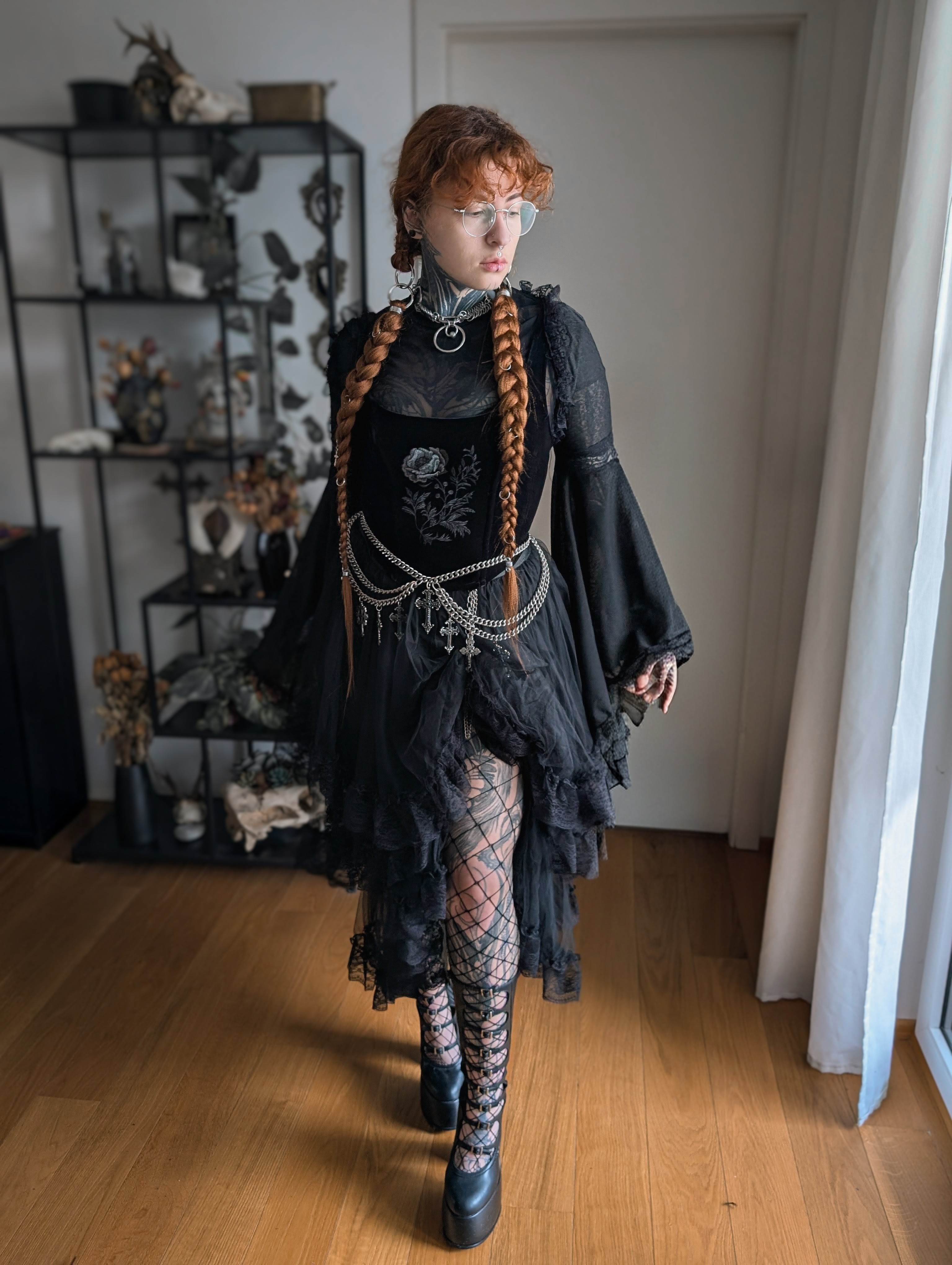 I’m a sucker for mesh, lace, corset vibe tops and basically everything witchy. I’m a social worker in ‘real life’, so during the week I focus on work appropriate fashion without losing my alternative touch.