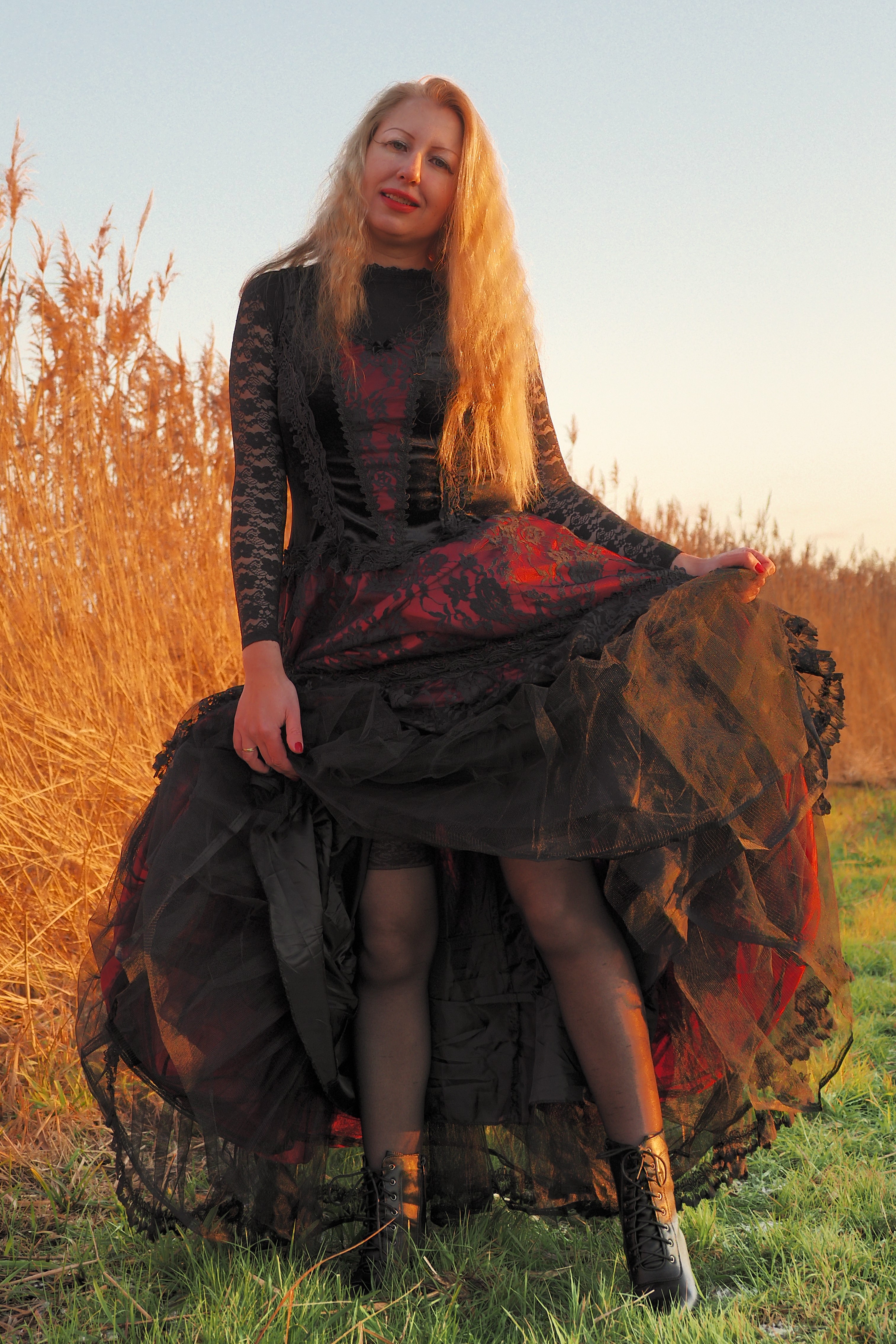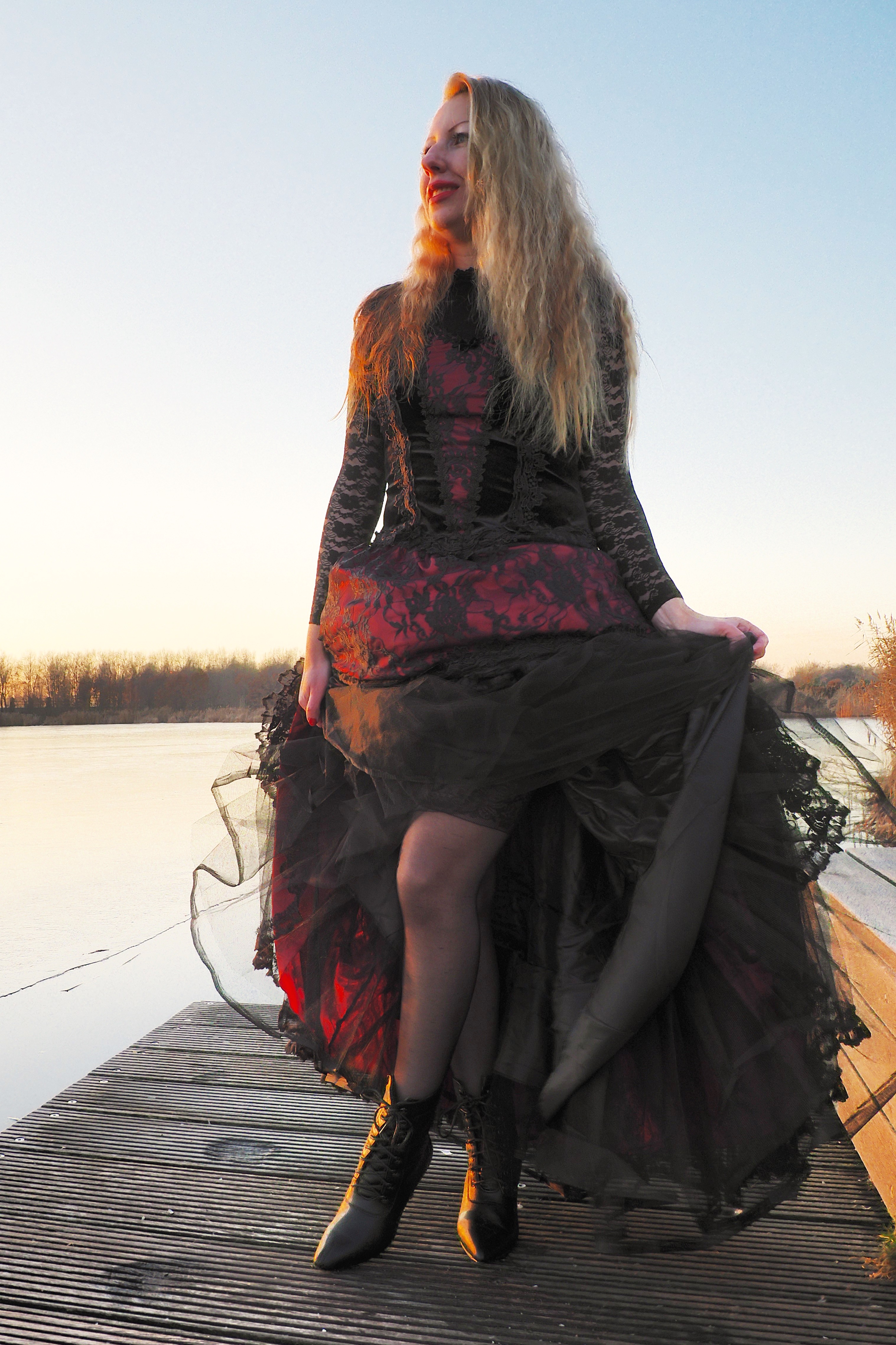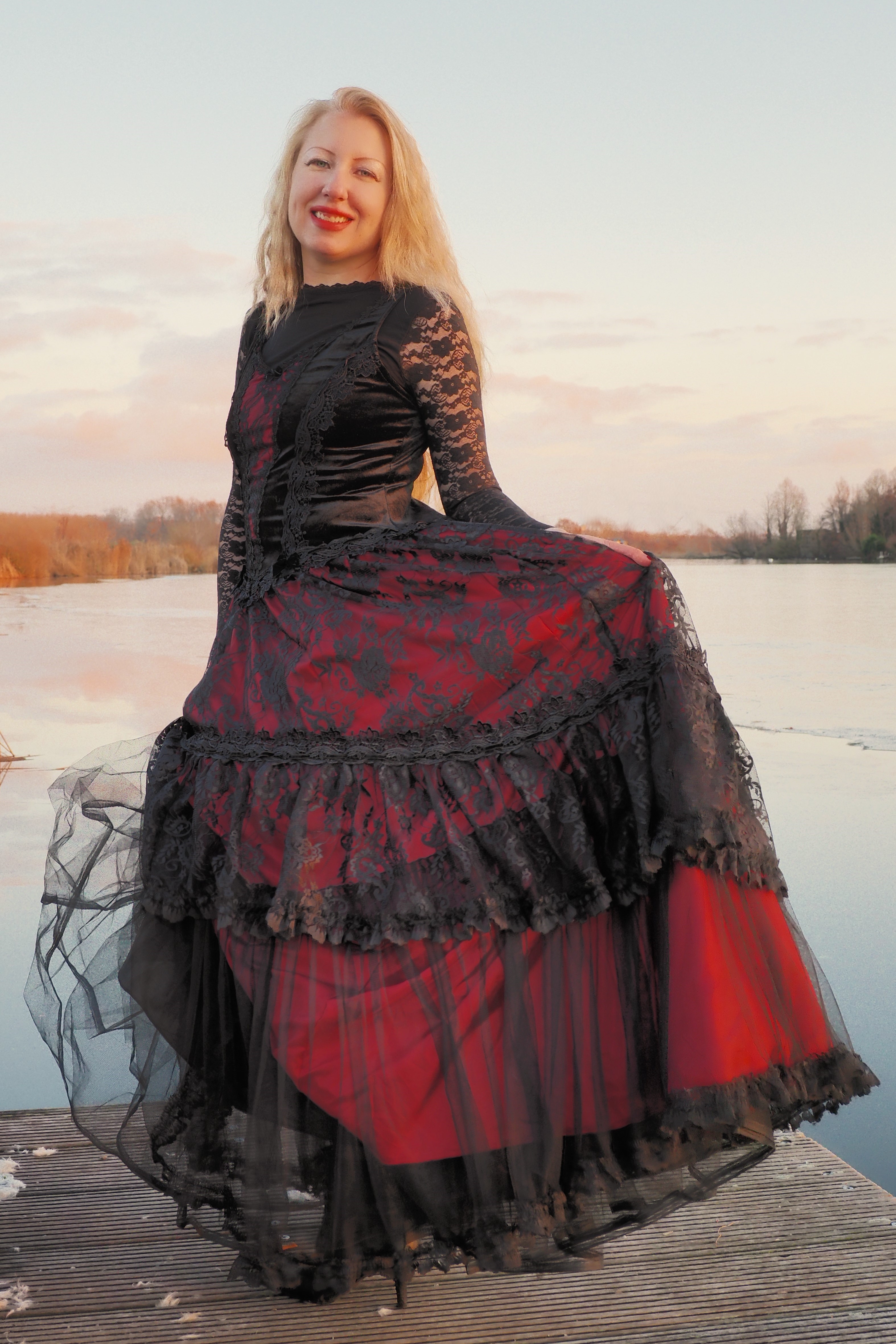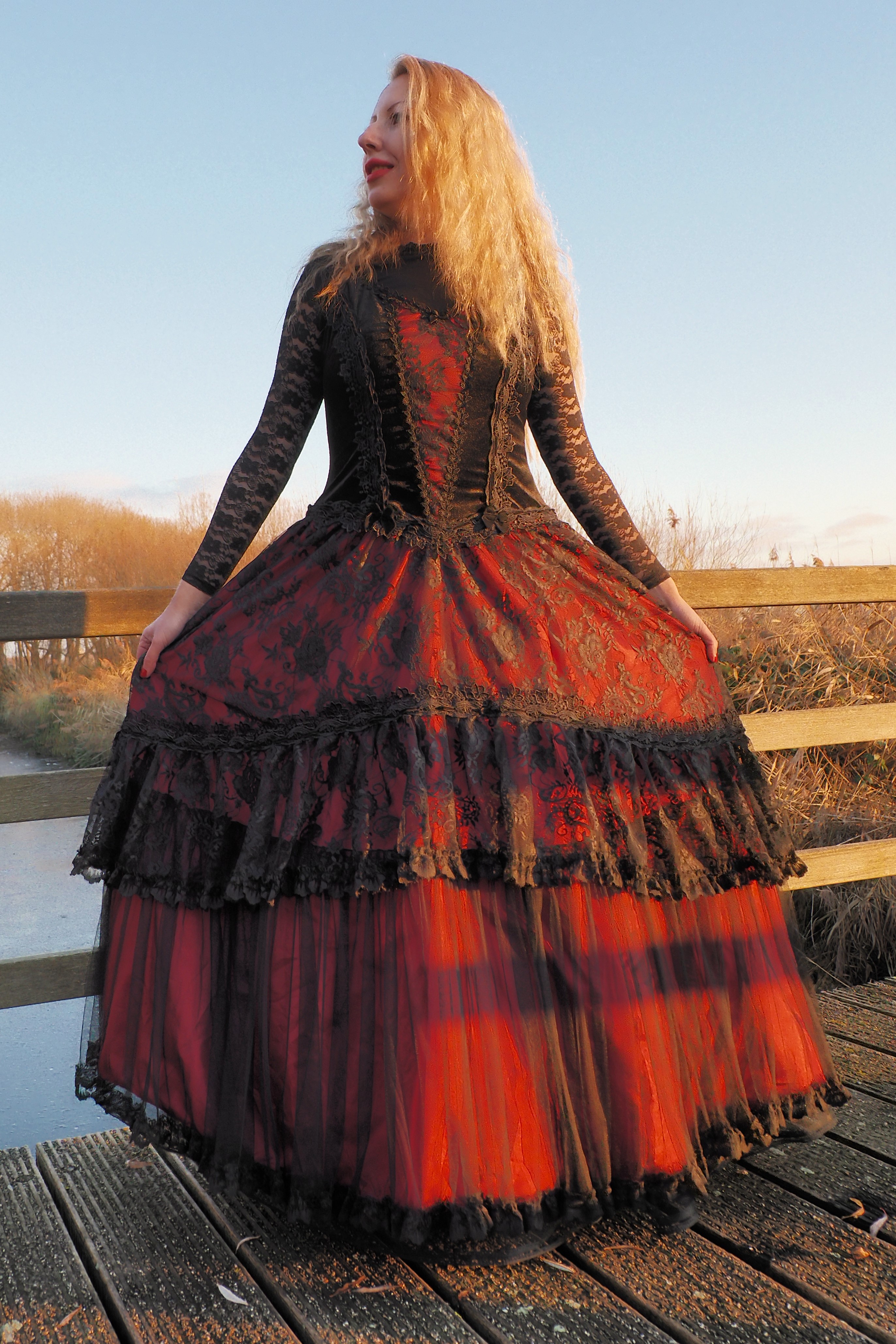 I bought this dress in September 2022, to be used for photoshoots. It was my first dress of the Sinister brand, and of course I still have it. The model is Nicole. I love vintage, medieval, gothic, Victorian inspired outfits.