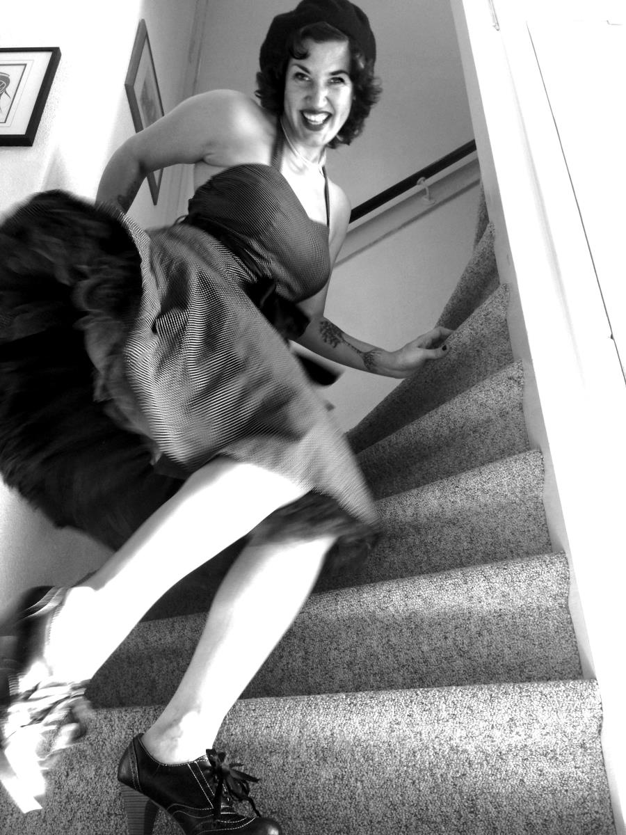 Ik ben een van oorsprong Amerikaanse vintage-loving zangeres, en mama van twee. Ik ben gek op de stijl van de jaren 40/50. Ik heb (momenteel) knal rood haar en tatoeages op mijn armen en eentje op bijn rechter bovenbeen.