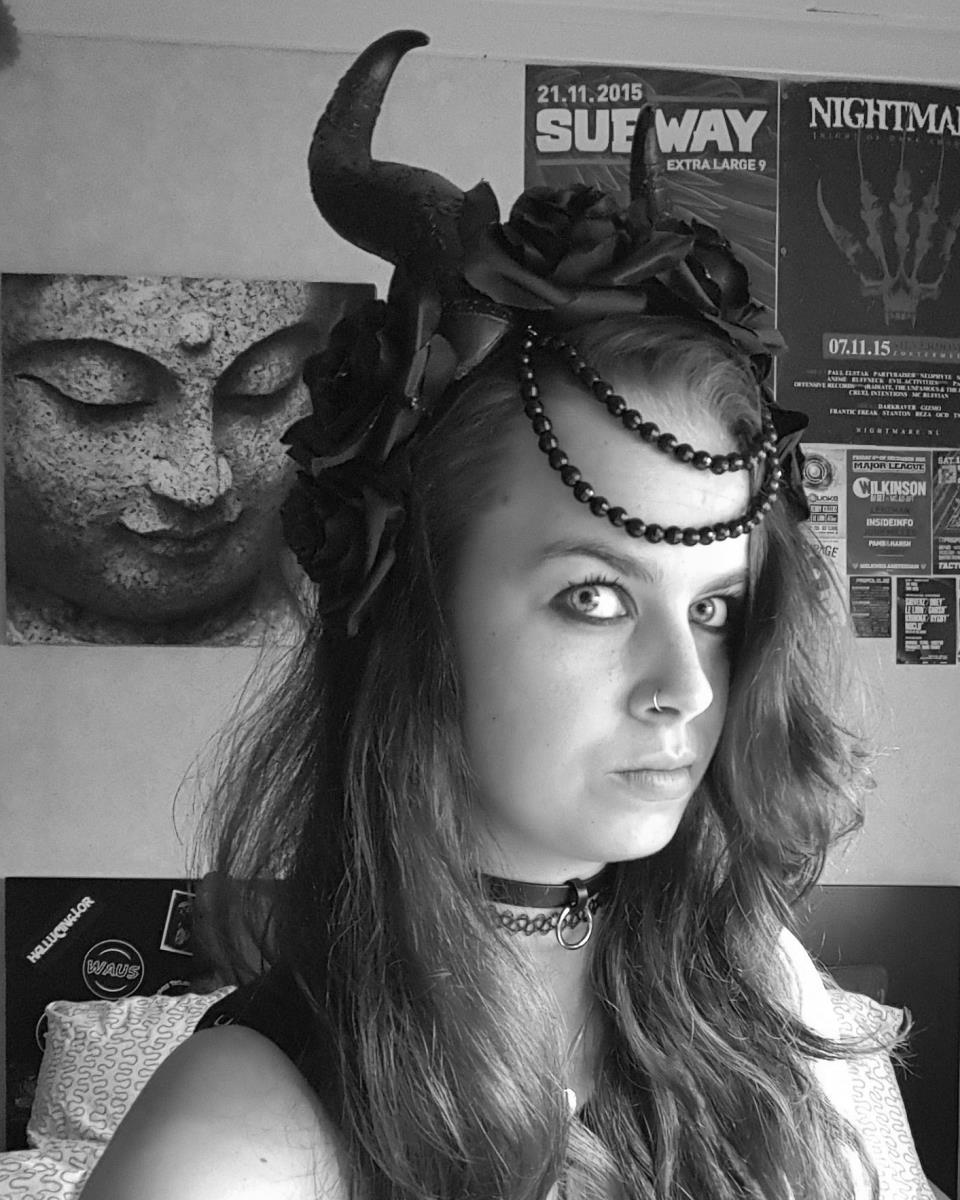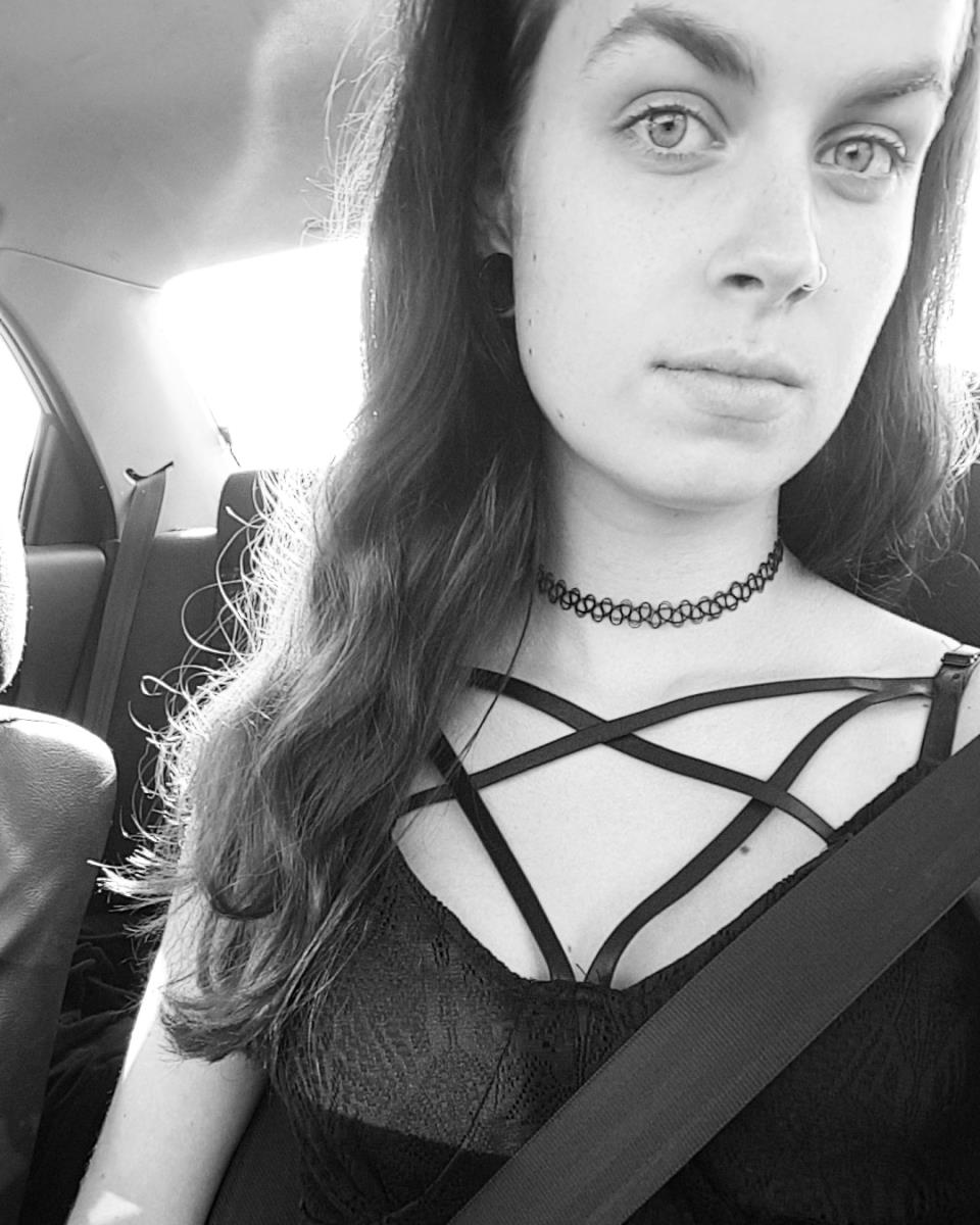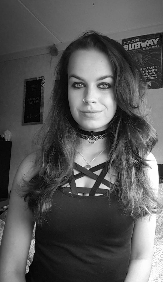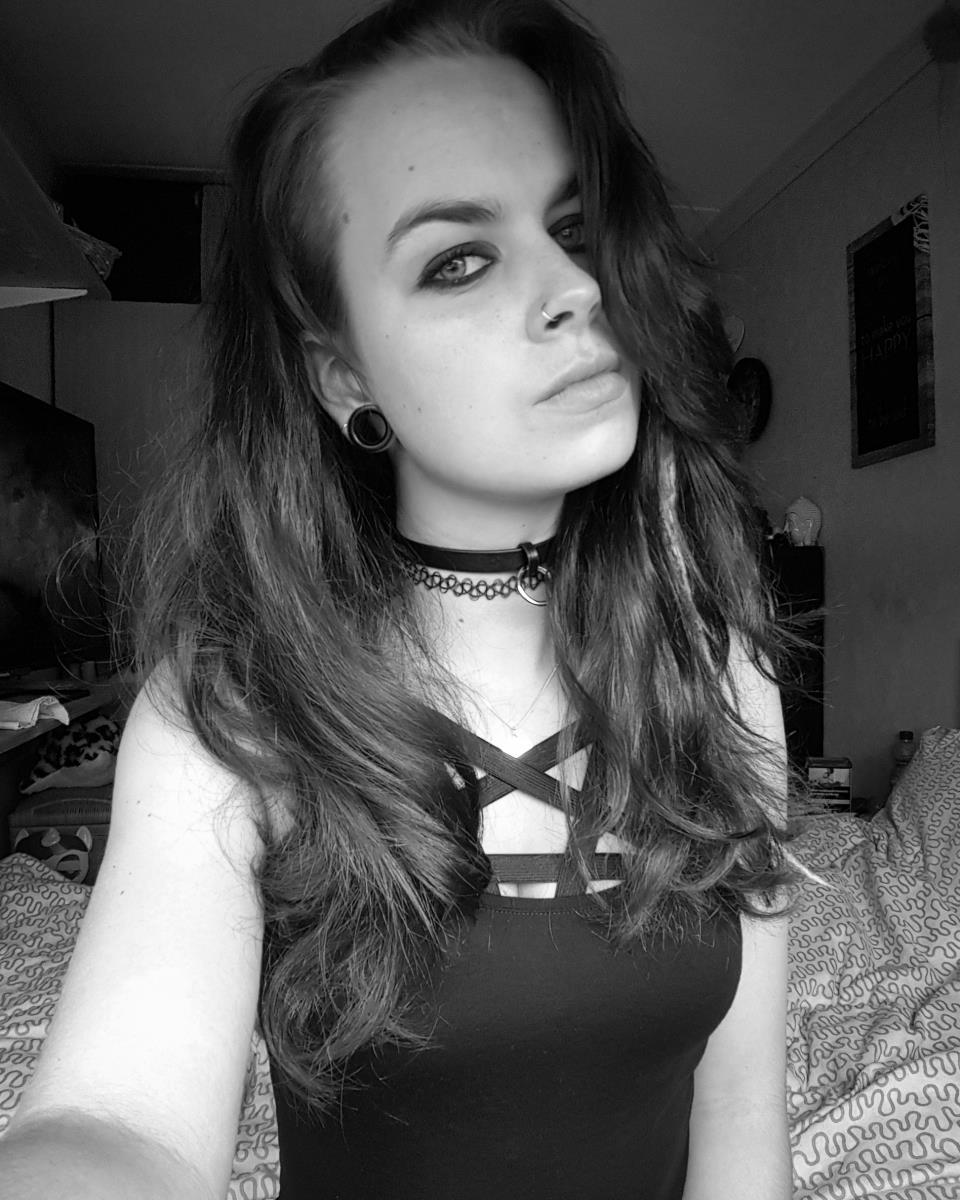 Daphne, 20 jaar, 18mm tunnels, mostly wearing black, Dr Martens