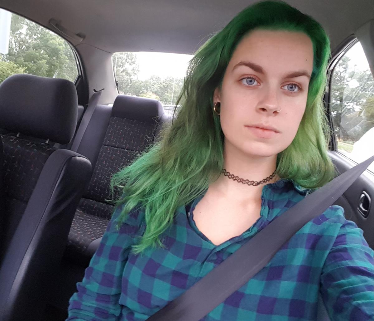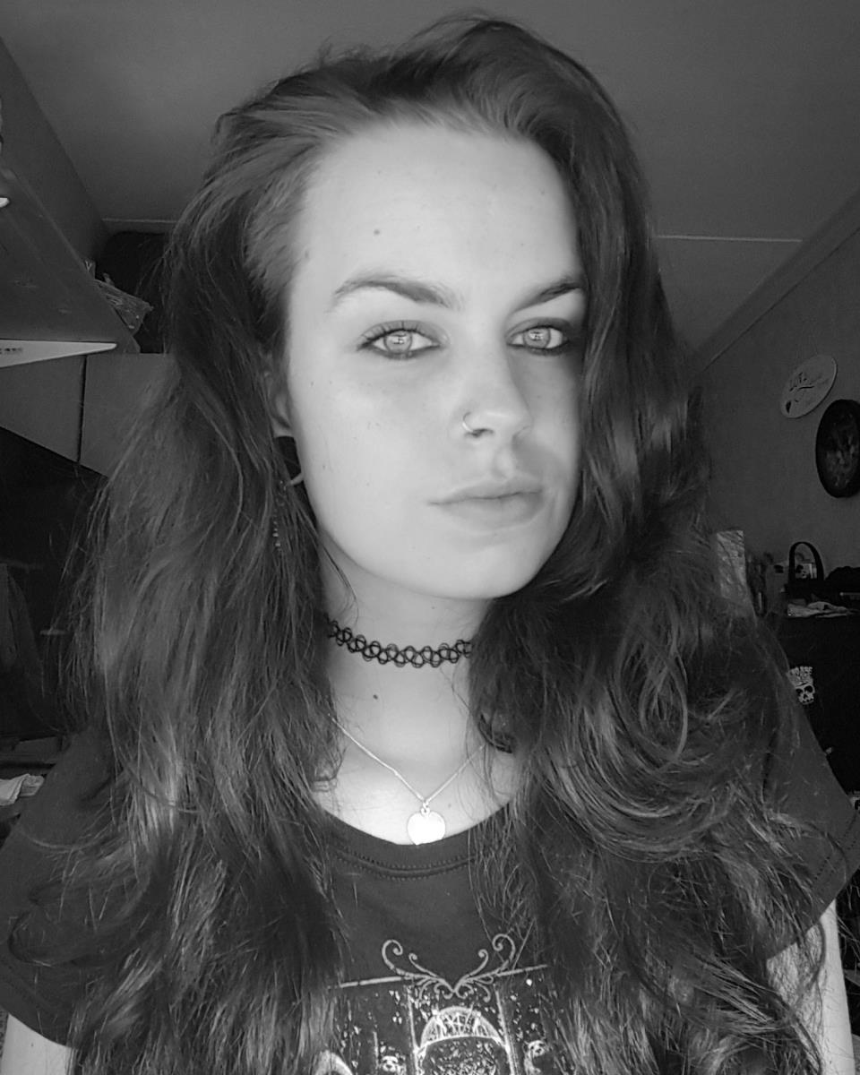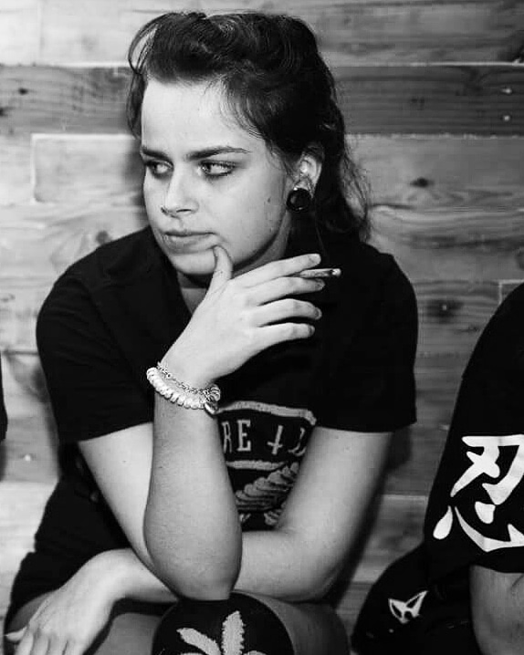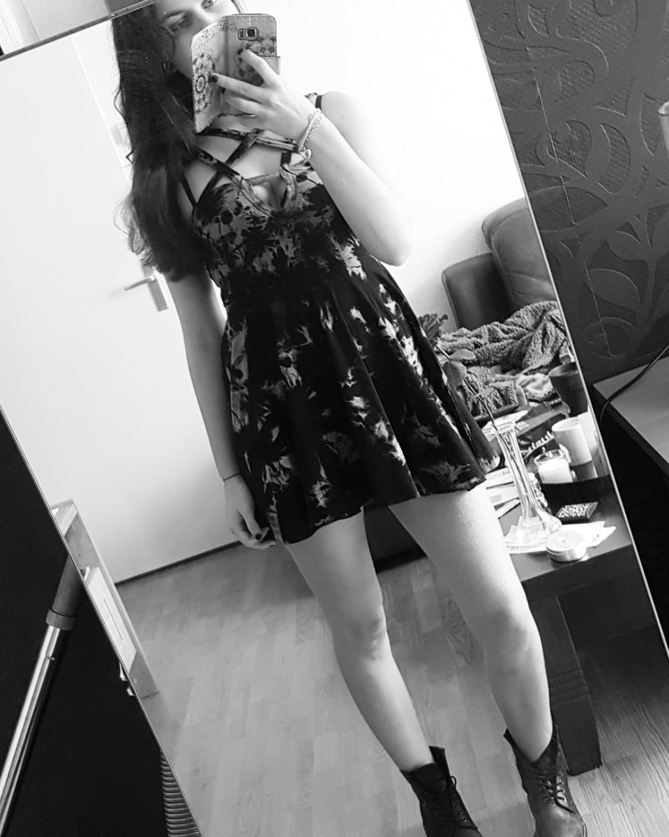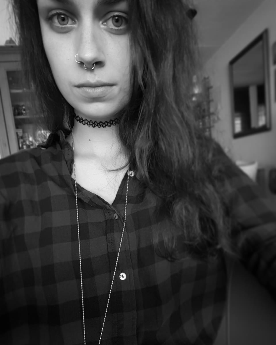 Daphne, 20 jaar, 18mm tunnels, mostly wearing black, Dr Martens